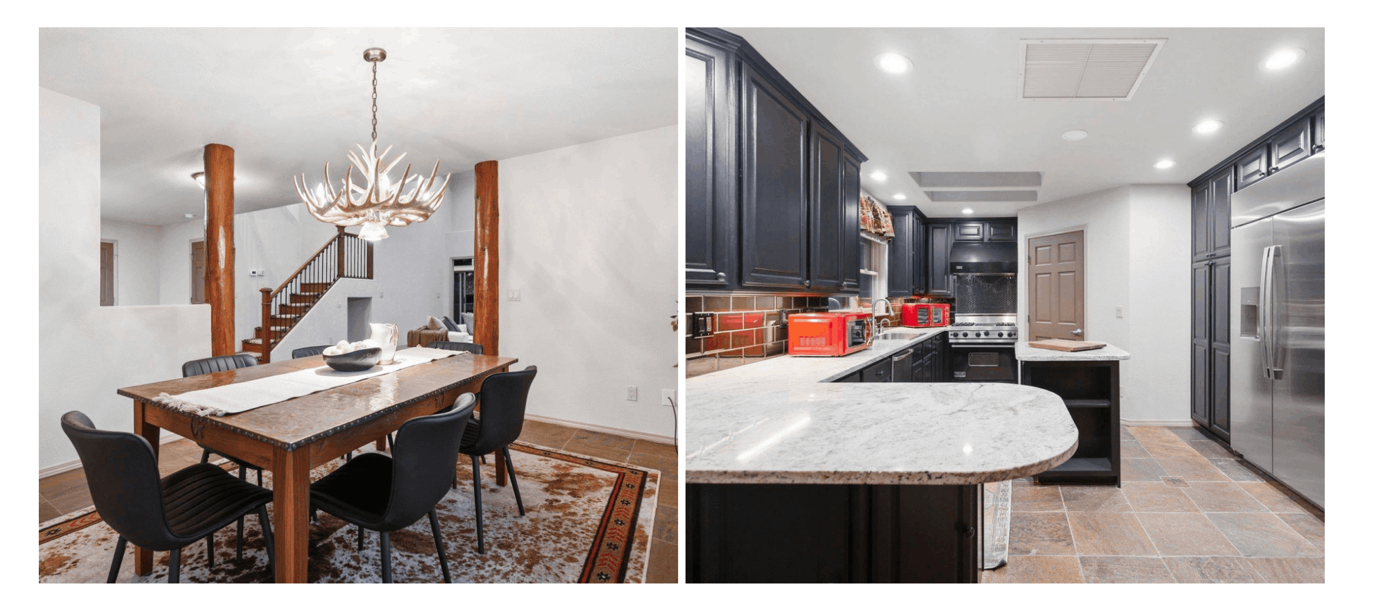 Ample cabinet storage and counter space make this kitchen equally practical for everyday use or entertaining, reinforcing the home’s balance between style and functionality.